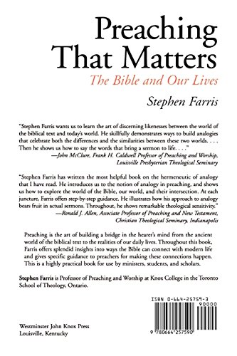 Preaching is the art of building a bridge in the hearer’s mind from the ancient world of the biblical text to the realities of our daily lives. Throughout this book, Stephen Farris offers splendid insights into ways that the Bible can connect with modern life and gives specific guidance to preachers on how to make these connections happen. This is a highly practical book for ministers and for classroom use.
